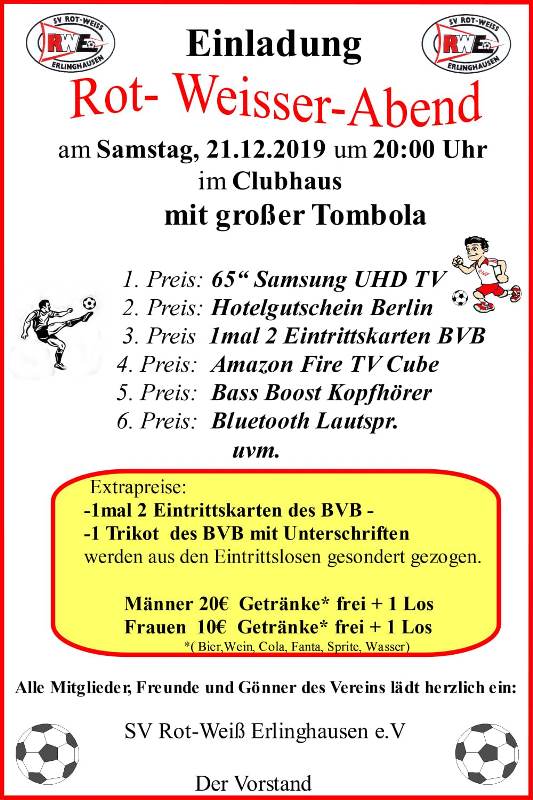 | 17.11.2019 | Rot-Weißer Abend am 21.12.2019: Lose ab sofort erhältlich |