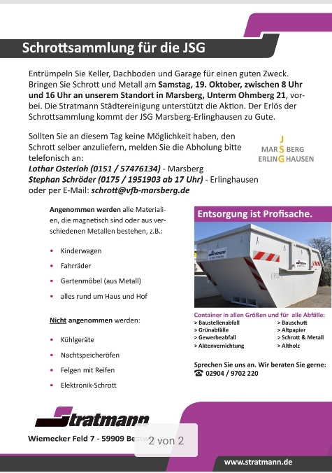 | 06.10.2019 | Schrottsammlung zugunsten der JSG |