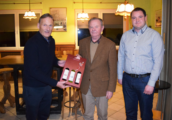| Im Mittelpunkt der diesjährigen Mitgliederversammlung des Sportvereins Rot-Weiß Erlinghausen am 9. März standen die Vorstandswahlen. Nach zehnjähriger Vorstandsarbeit, zuletzt vier Jahre als stellvertr. Vorsitzender, stellte sich Martin Siek nicht mehr zur Wiederwahl. Hans Joachim Watzke, den die Versammlung einstimmig als Vorsitzenden bestätigte, bedauerte den Entschluss Sieks sehr. Er habe als sein Vertreter wichtige Akzente gesetzt und auch selbstkritisch das ein oder andere hinterfragt. Watzke dankte ihm für die vierjährige enge Zusammenarbeit und überreichte zum Abschied ein kleines Präsent. Als neuen stellvertr. Vorsitzenden wählte die Versammlung einstimmig Oliver Dülme, der bereits 8 Jahre dem Vorstand angehört und den Verein u. a. bereits beim Projekt „Umnutzung der Grundschule“ mit viel Engagement vertritt. Nachfolger Dülmes als stellvertr. Geschäftsführer ist der langjährige Jugendleiter und zuletzt als Beisitzer dem Vorstand angehörende Stefan Wild. Auch auf der Position des stellvertr. Jugendleiters gab es einen Wechsel. Für Josef Aßhauer, der dem Vorstand weiterhin als Beisitzer angehört, wurde Benjamin Stoop in dieses Amt gewählt. Mit der Wahl von Bernd Aßhauer wurde der Vorstand um einen weiteren Beisitzer erweitert. Alle anderen bisherigen Vorstandsmitglieder wurden in ihren Ämtern bestätigt. Zum neuen Kassenprüfer wurde Gisbert Schröder gewählt. Sportlich und auch finanziell konnte RWE auf ein positives Jahr 2018 zurückblicken. Zwar verpasste die 2. Mannschaft auf fast schon tragischer Weise den Aufstieg in die Kreisliga B, doch mit der Entwicklung der 1. Mannschaft zeigte sich der Vorsitzende in seinem Statement sehr zufrieden. Seit gut einem Jahr spielt die Landesligaelf einen attraktiven, offensiven Fußball, der sich auch in den gestiegenen Zuschauerzahlen niederschlage. Er lobte den ausgeschiedenen Trainer Sven Willeke für seine hervorragende Arbeit und wünschte dem neuen Trainer Vaidas Petrauskas viel Glück und Erfolg. Für das Jahr 2019 erhofft sich „Aki“ Watzke den erneuten Gewinn des Kreispokals. Finanziell ist der Verein gut aufgestellt und auf dem besten Wege, spätesten 2021 sämtliche Darlehen für den Clubhausbau und die Kunstrasenrenovierung getilgt zu haben. Ein besonderes Dankeschön von der Versammlung erhielten Erich Kufeld, Thomas Gerlach und Hermann Marzodko, die maßgeblich an den noch laufenden Renovierungsarbeiten in und um das Clubhaus sowie den alten Kabinen beteiligt waren und sind. Jugendleiter Stephan Schröder zeigte sich mit den ersten 1 ½ Jahren der JSG mit dem VfB Marsberg zufrieden. Sportliche Highlights waren die Meisterschaft der D-Junioren und der Aufstieg der A-Junioren. Sorgen bereiten aber die älteren Jugendmannschaften aufgrund der dünnen Spielerdecke. Positiv entwickelt sich der Mädchenfußball. Seit Sommer 2018 trainieren ca. 15 Mädchen im Alter von 12 bis 18 Jahre aus dem gesamten Stadtgebiet regelmäßig unter der Leitung von Oliver Spaude (Padberg) in Erlinghausen. Ein Highlight im letzten Jahr war die BVB-Fußballschule in den Herbstferien. Hans-Joachim Watzke zeigte sich zuversichtlich, dass die BVB-Trainer auch in diesem Jahr Erlinghausen in ihr Programm aufnehmen. Den Abschluss der Versammlung bildete die Ehrung verdienter Mitglieder. Christoph Aßhauer und Reinhard Gerlach sind 25 Jahre Mitglied bei RWE. Für 40-jährige Mitgliedschaft erhielten Klaus Bathe, Helmut Fester, Christoph Scholle und Jörg Wilk die goldene Vereinsnadel. Peter Kersting, Hermann Marzodko und Friedel Stolte wurden für ihre 50-jährige Mitgliedschaft geehrt. Besonderen Applaus erhielt zum Abschluss Alfons Otto, der dem Verein seit 60 Jahren die Treue hält. Auf dem Bild der geehrte Alfons Otto mit dem 1. Vorsitzenden Hans-Joachim Watzke und dessen neuer Vertreter Oliver Dülme. | |