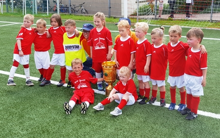 | Für unsere Bambinis wurde gleich nach ihrem ersten Spiel in ihrem Fußballerleben ein Traum wahr: sie durften am Samstag nach ihrem Freundschaftsspiel im Rahmen unseres Sportfestes den DFB-Pokal in Empfang nehmen😀! Dafür müht sich manch ein Fußballprofi Zeit seines Lebens vergeblich. Ansonsten kurz und knapp: Volkmarsen, Germete-Wormeln, Giershagen, Wrexen, Musikverein, halb fünf, Taxifahrer, Jugend, Kindergarten, Vereine, Clubs, Gewitter, Partyfreunde, Sängerinnen und Sänger, Helfer, Sponsoren und alle, die wir vergessen haben: Danke für ein wunderbares Sportfest 2017! | |